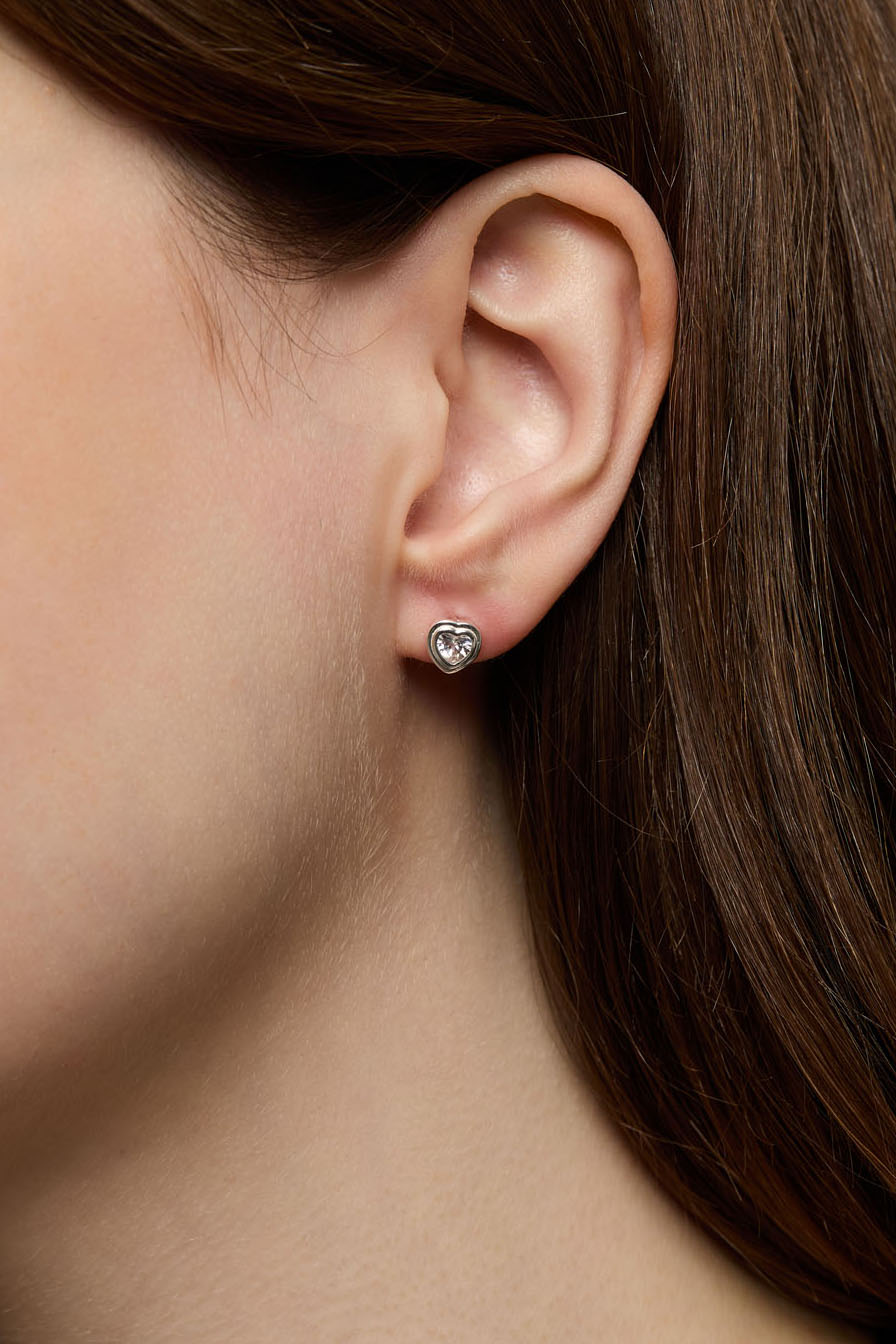 Studs i ekte sølv med dobbel kant og en hjerteformet kubisk zirkonia-stein i midten.