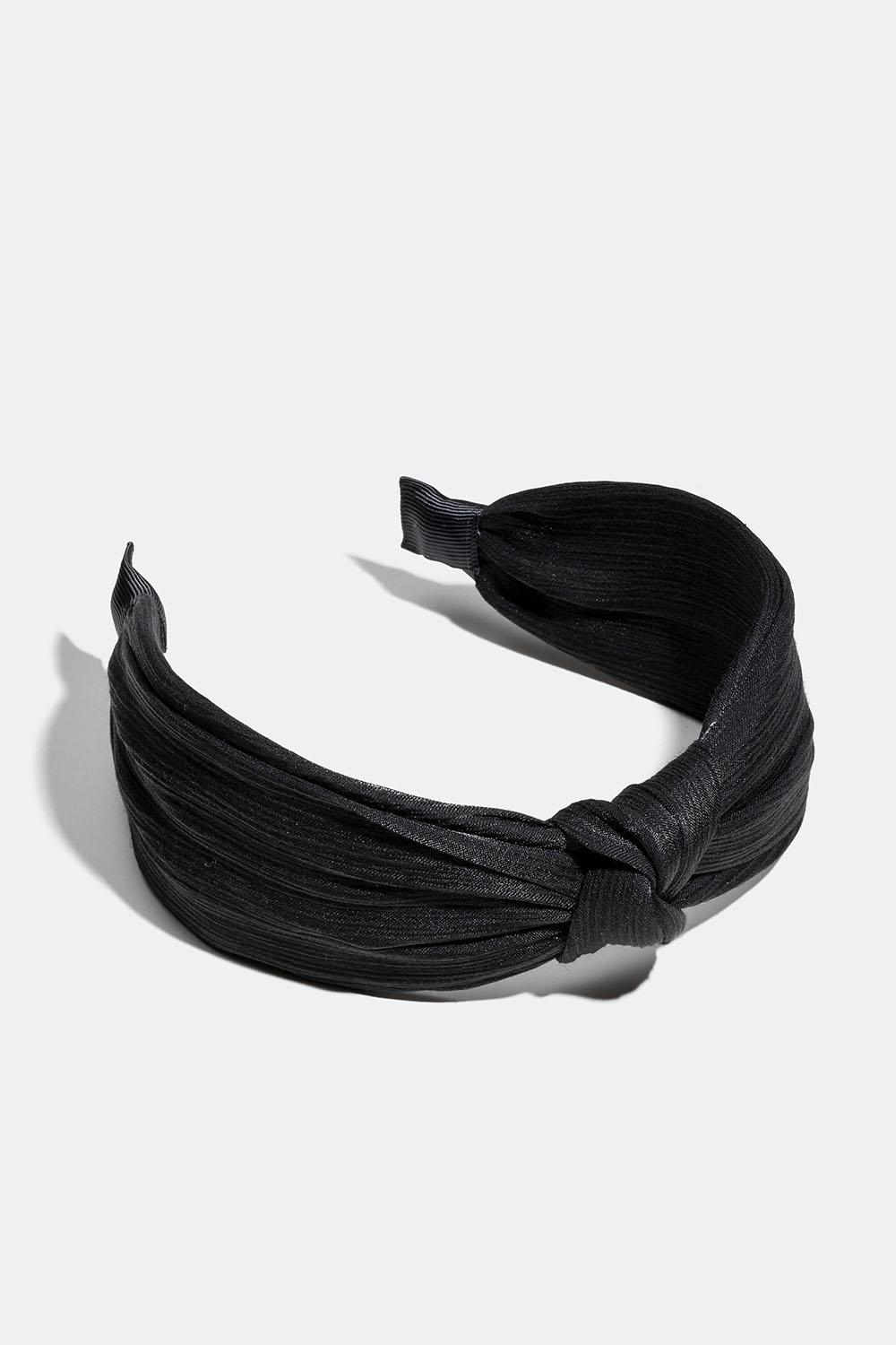 Svart diadem i silkeimitasjon i bred design med knute og skinnende striper.
