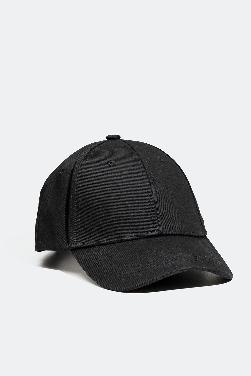 Svart caps i klassisk modell med lett bøyd brem. Klassisk caps med konstruksjon i seks paneler, og størrelsen kan justeres på baksiden med en spenne i metall.