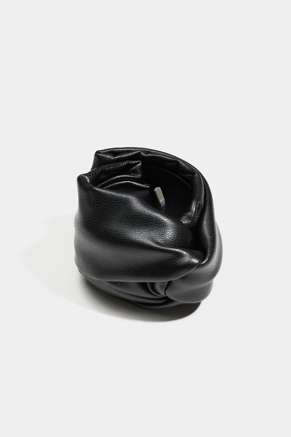 Duskdekorasjon i imitert skinn med knutedesign. Den festes til hårknuten din med en krok og et trykknappbånd som surres rundt håret.