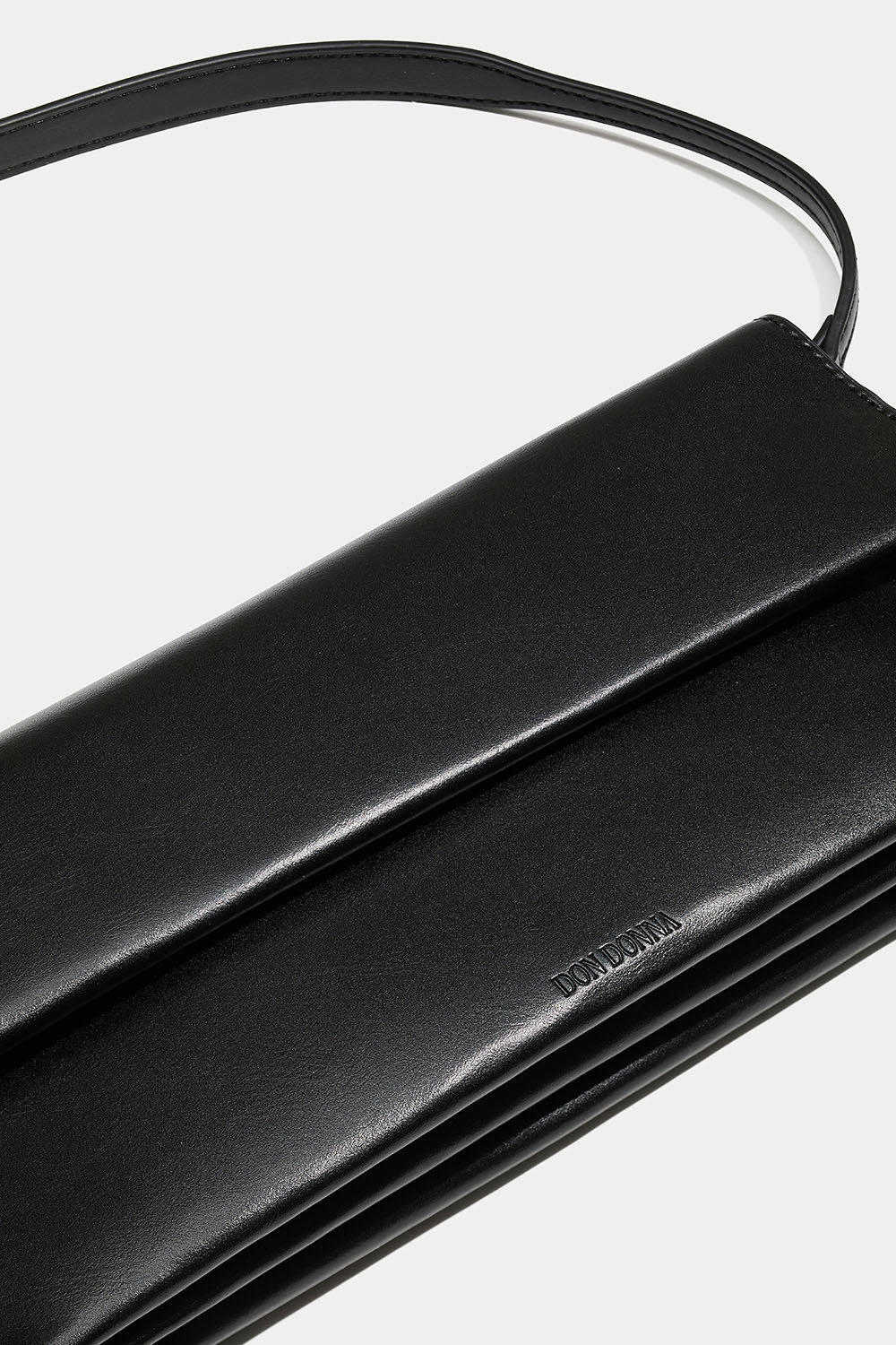 Svart konvoluttveske i imitert skinn med en inngraver, liten Don Donna-logo. Vesken lukkes med magnet og har tre rom på innsiden, ett som lukkes med glidelås. Det følger med en avtagbar skulderrem.