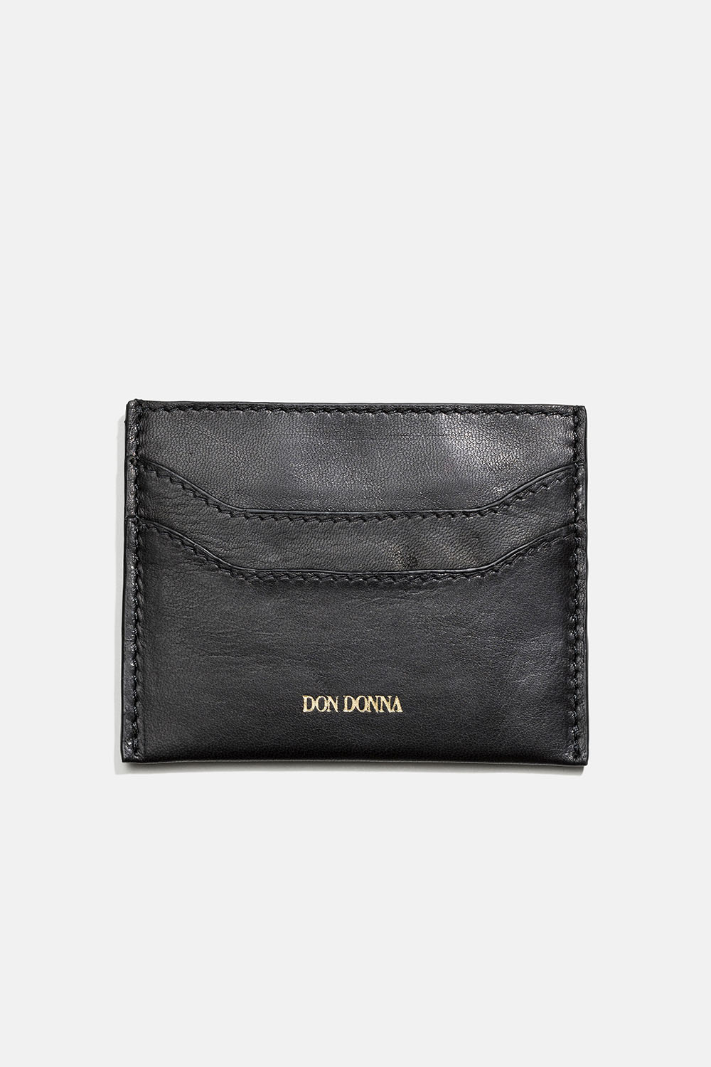 Kortholder fra Don Donna i skinn. En praktisk, liten lommebok med to rom på hver side og et litt større rom i midten til flere kort, kvitteringer eller sedler.