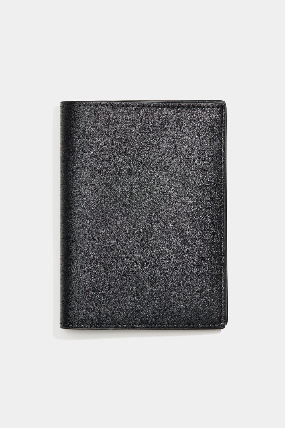 Svart passetui i imitert skinn. Innvendig er det også fire rom for kort.