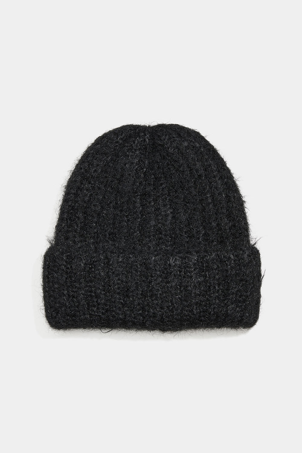 Svart ribbestrikket lue i ullblanding i gruppen Accessories / Strikket / Luer hos Glitter (171001399000)