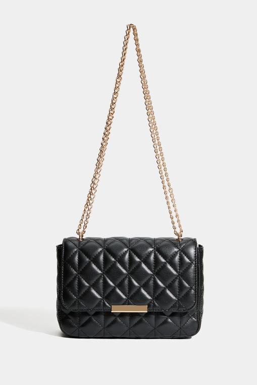 Svart veske med quiltet design og gullfarget skulderrem i gruppen Vesker / Skuldervesker hos Glitter (172002019000)