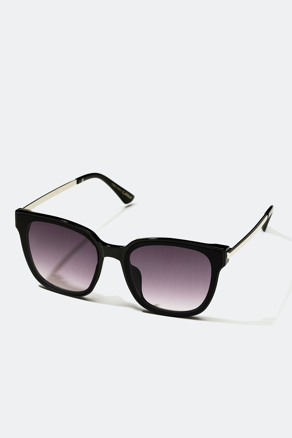 Stilige solbriller i firkantet modell med brillestenger i metall. Solbrillene fås i svart med mørktonede glass.