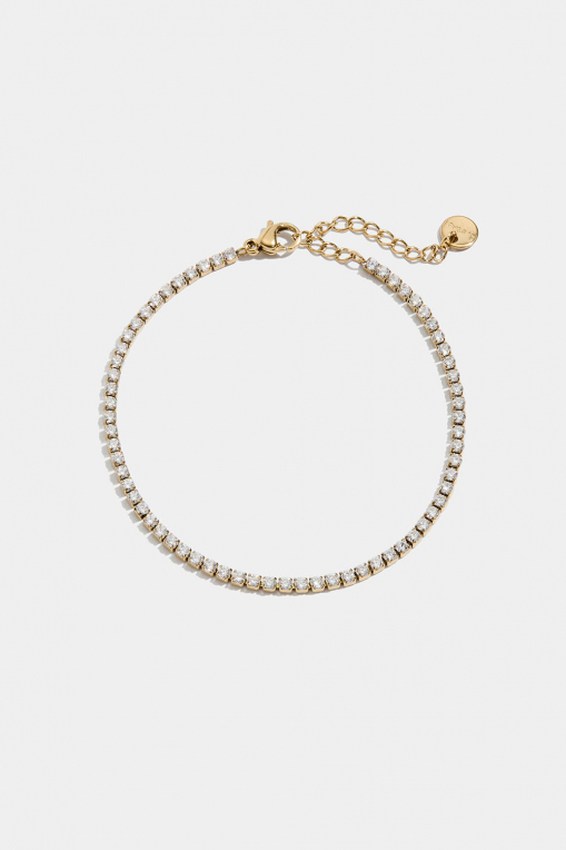 Smalt tennisarmbånd i høyglanspolert rustfritt stål, PVD-belagt med 18 karat gull, med Cubic Zirconia-steiner.