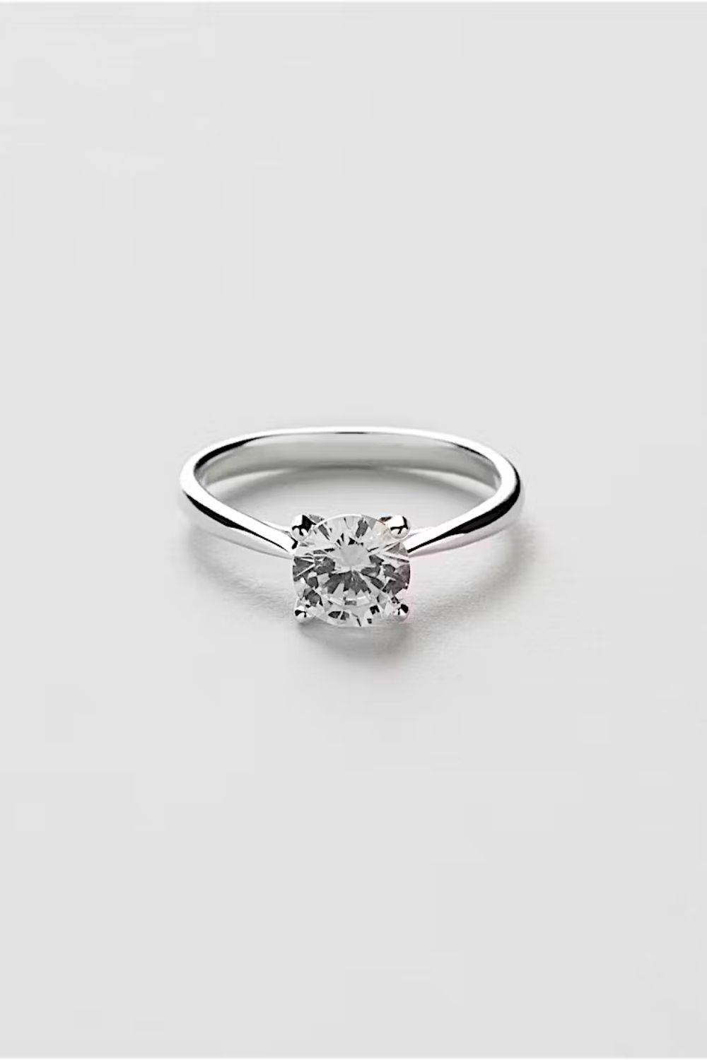 Solitærring i ekte sterlingsølv 925, pyntet med en klar Cubic Zirconia sten.