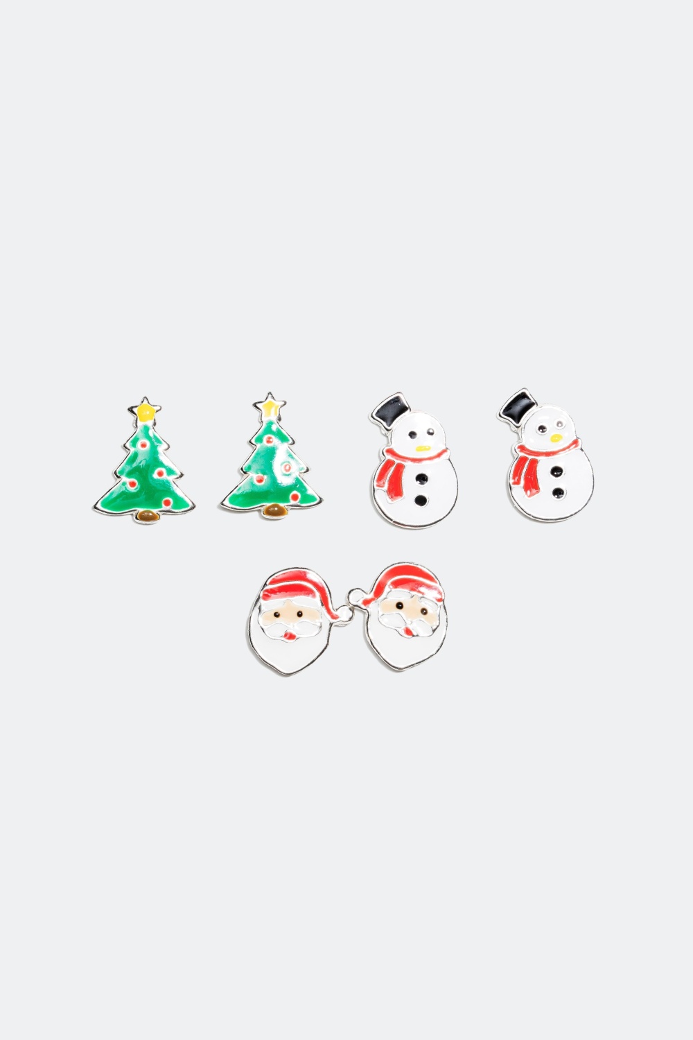 Tre par øredobber i ekte sølv med juletema. Velg mellom motiver med juletrær, julenisse og søte snømenn.