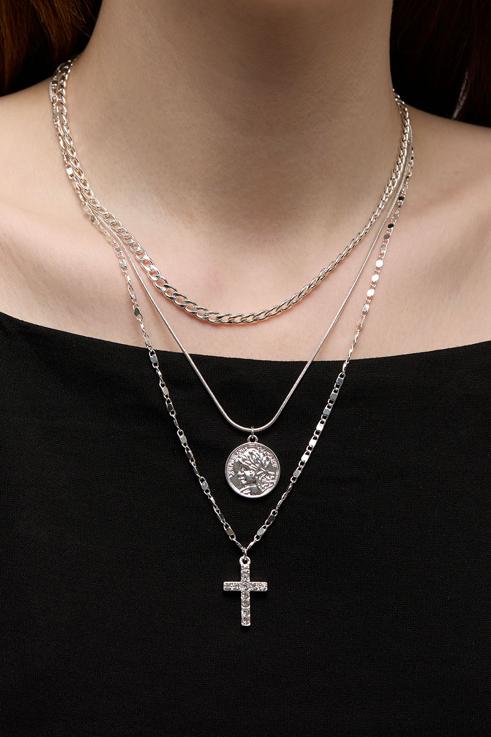 Trippelhalskjede med kors og mynt i gruppen Smykker / Halskjeder / Halskjeder med anheng hos Glitter (254002381001)