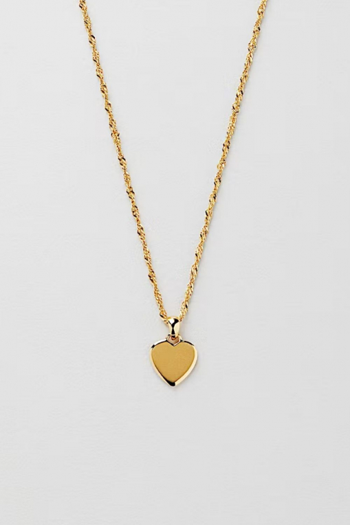 Hjertehalsbånd i singapore-kjede forgylt med ekte 24k gull og med en kjerne av ekte sterlingsølv 925.
