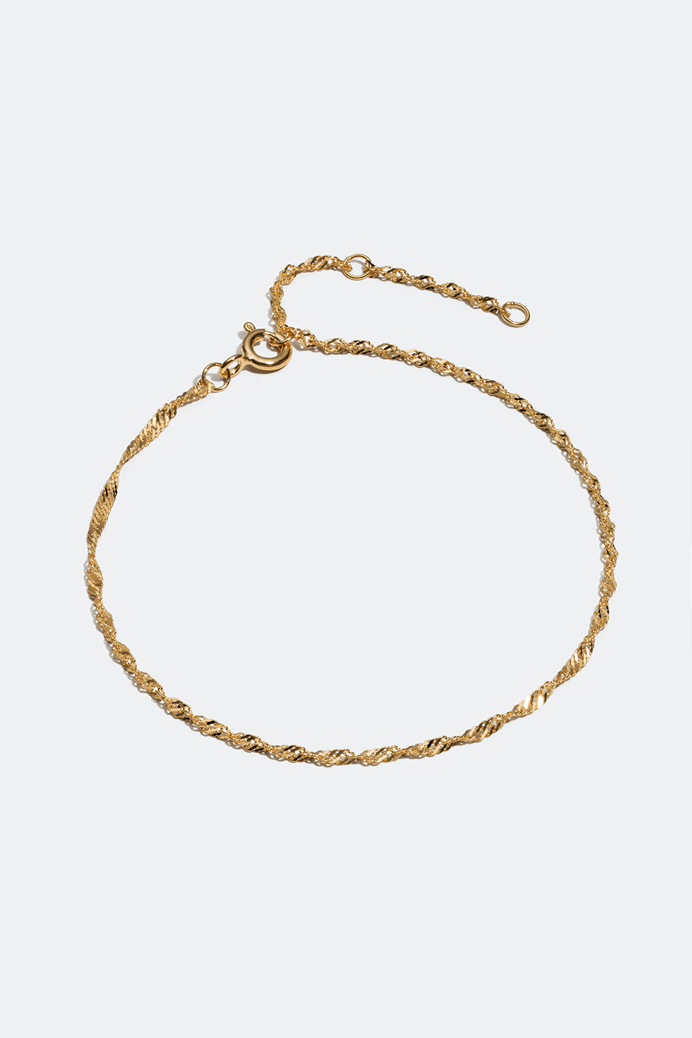 Kjedearmbånd i 18k gullbelagt ekte sølv med tvunnet design. Et tidløst armbånd som du lett kan bruke til alle antrekk, enten du skal på jobb eller fest.