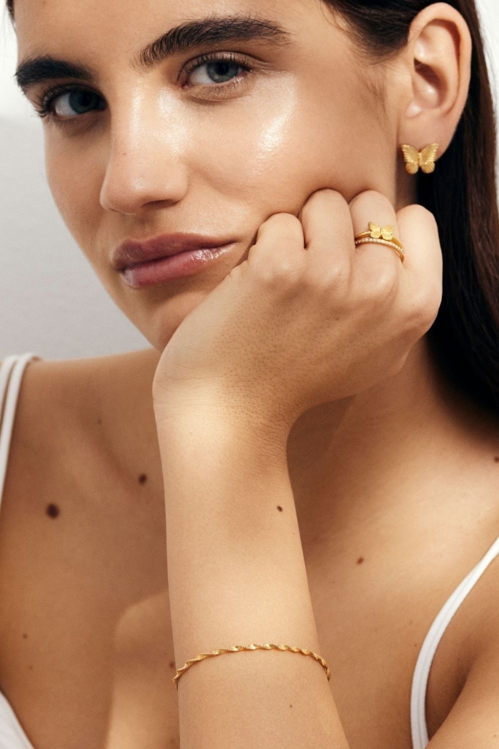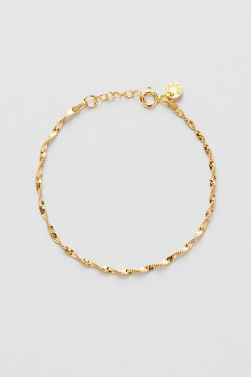 Armbånd med tvunnet fiskebenskjede forgylt med ekte 18k gull, og med en kjerne av ekte sterlingsølv 925.