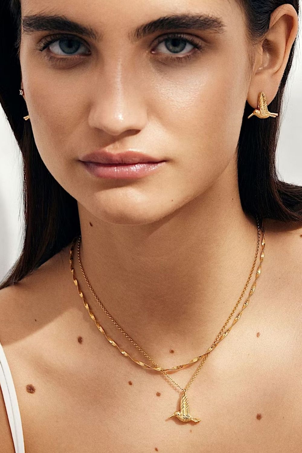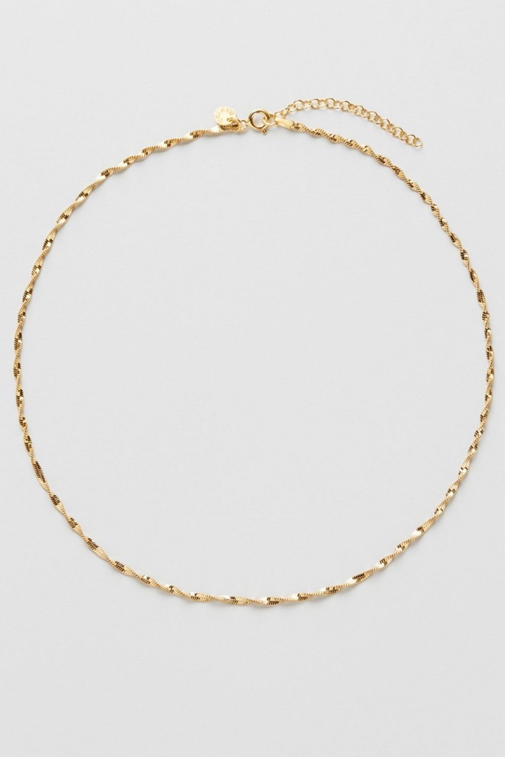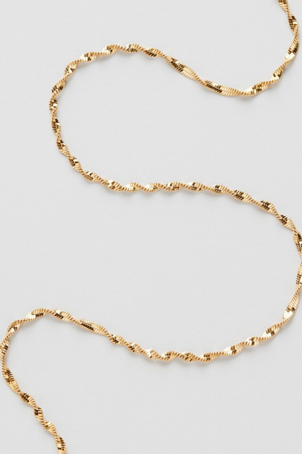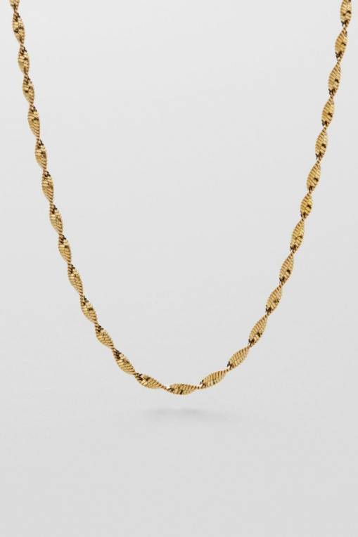Halskjede med tvunnet fiskebenskjede, forgylt med ekte 18k gull og med en kjerne av ekte sterlingsølv 925.