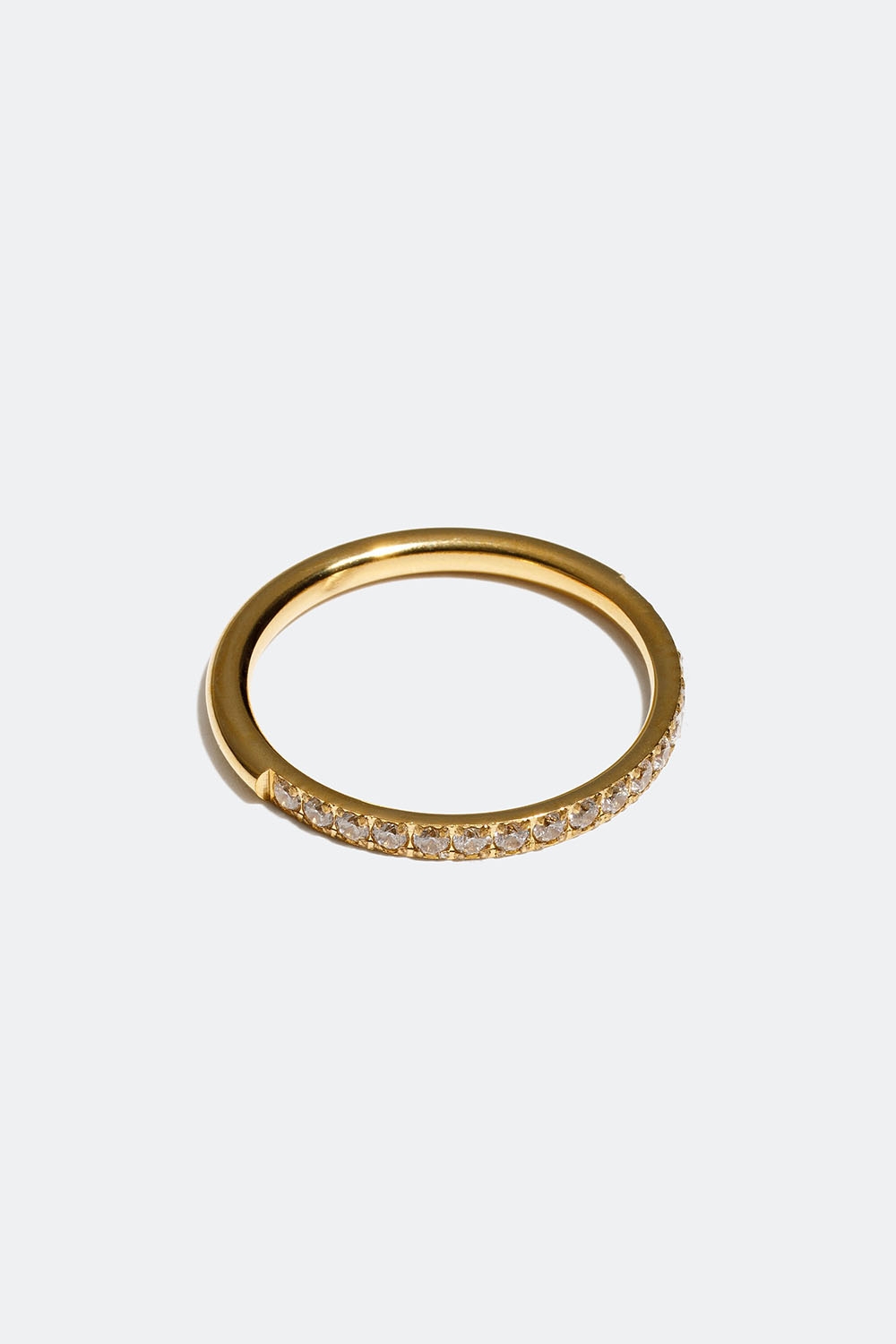 Ring i høypolert rustfritt stål som er PVD-belagt med 18 k gull. Dette er et smykke som tåler vann og er laget av et allergivennlig og slitesterkt materiale slik at de holder seg fine lenge. Du kan bade, dusje og trene uten å bekymre deg for at fargen forsvinner. Les mer her.