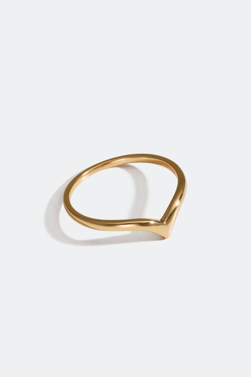 Stilren, blank V-formet ring i 18 k forgylt ekte sølv.