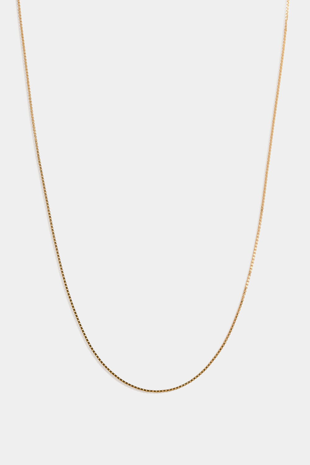 Tynt, venetiansk halskjede i 18k forgylt ekte sølv Et kjede med firkantet design som er vakkert å bære som det er. Et perfekt halskjede til hverdagsbruk, som også kan kompletteres med anheng eller kombineres med andre halskjeder for en lag-på-lag-look.