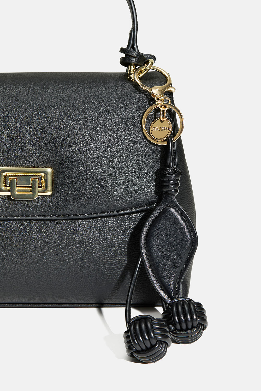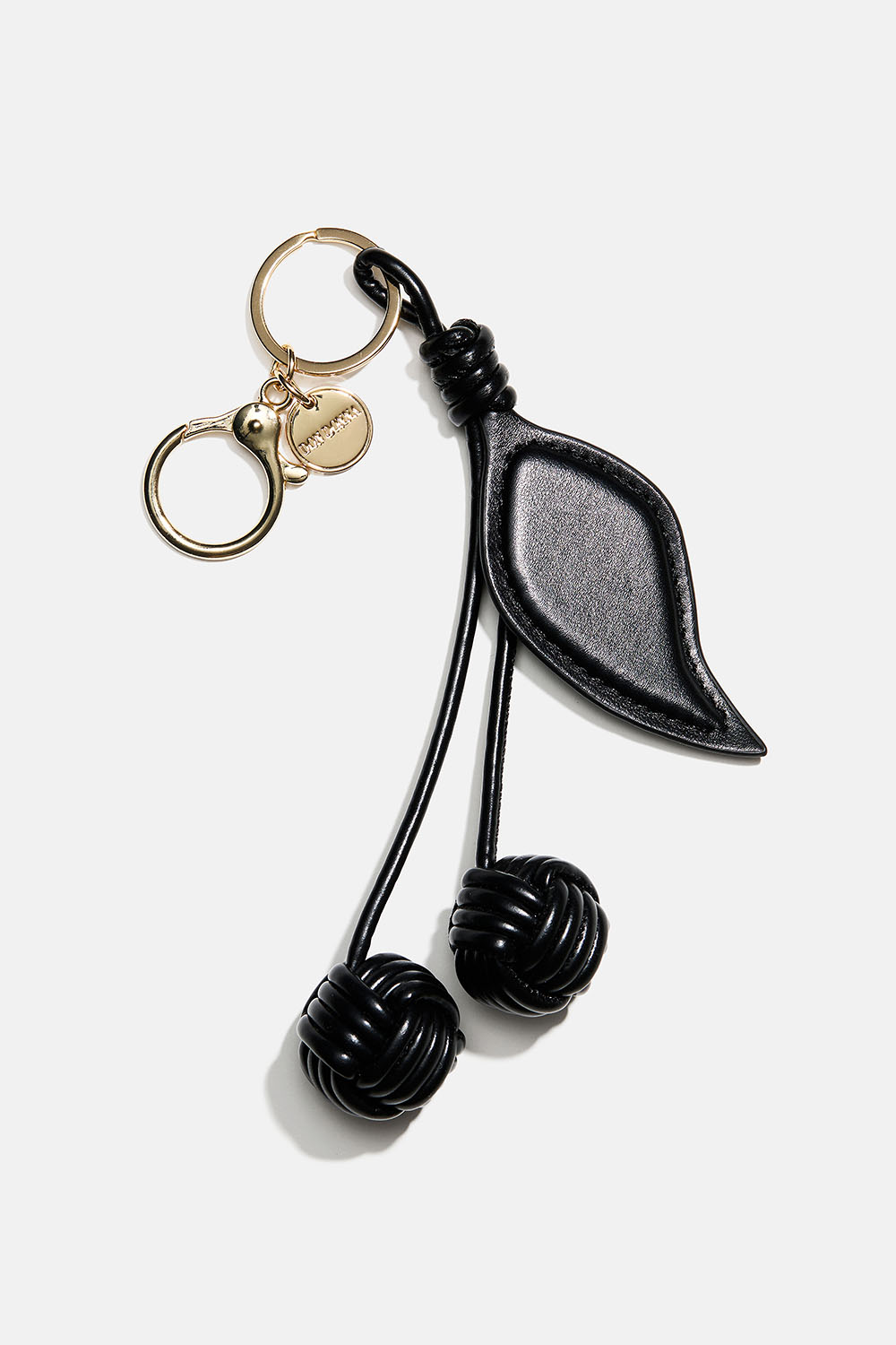 Nøkkelring med kirsebær i svart imitert skinn. Kan festes med nøkkelring og karabinlås.