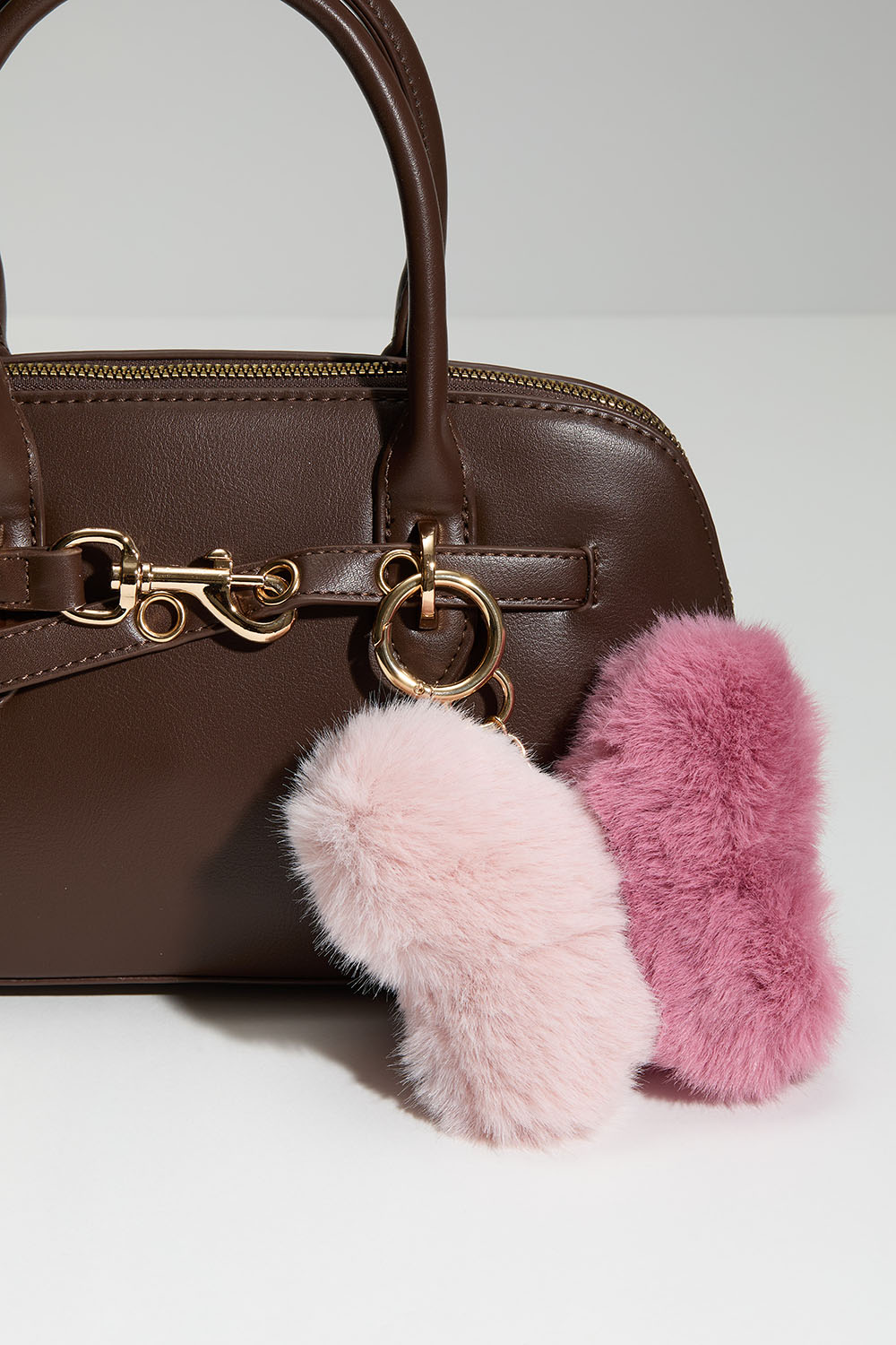 Veskedekorasjon med rosa fluffy sommerfugl i lys og mørk rosa. Kan enkelt festes med klolås.