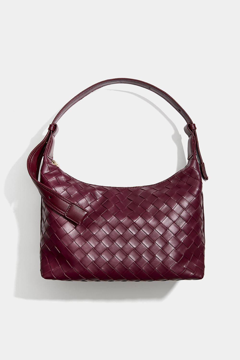 Vinrød håndveske med flettet tekstur