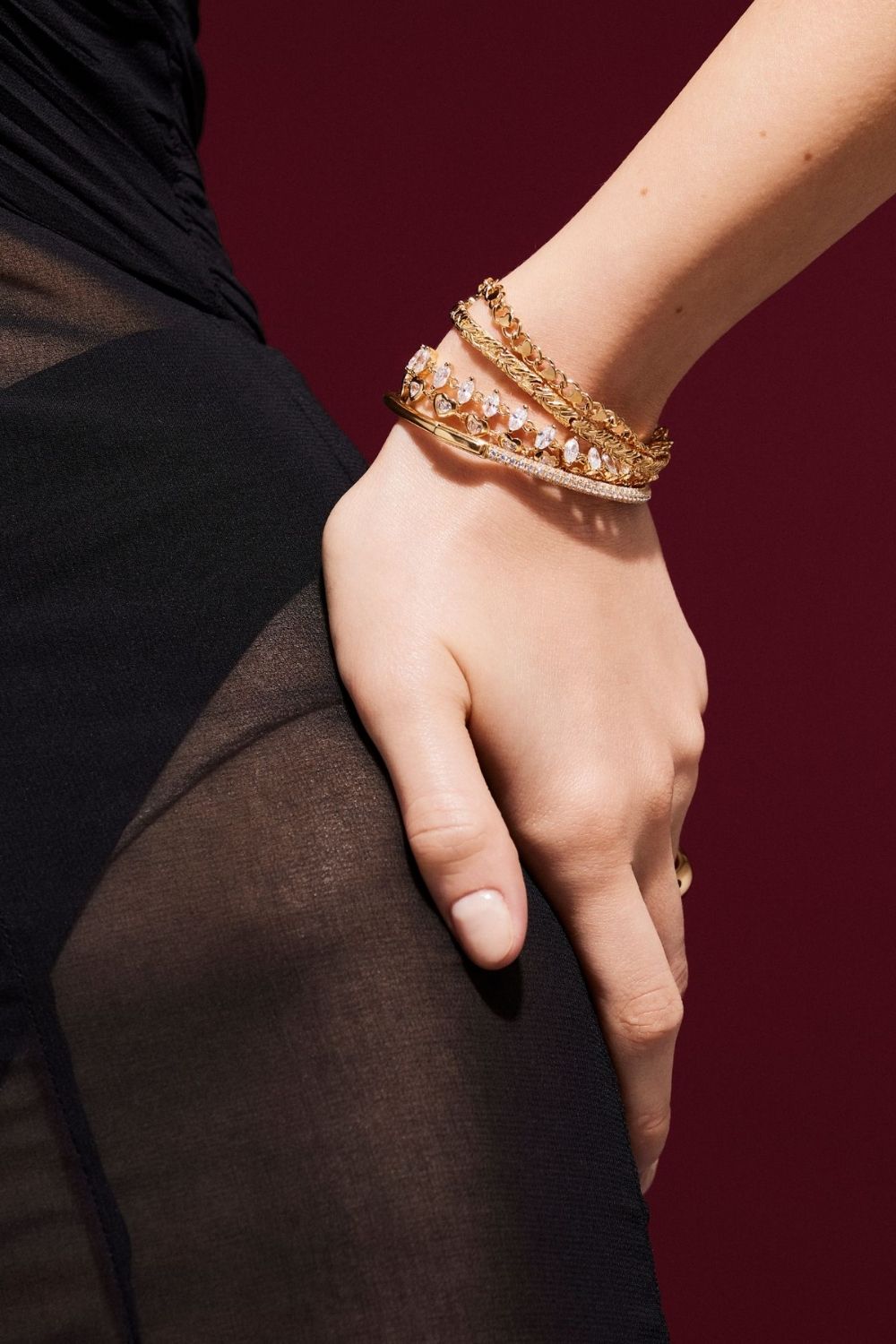Vintage-inspirert lenkearmbånd med hamrede og mønstrede overflater, forgylt med ekte 24k gull og med en kjerne av ekte sterlingsølv 925.
