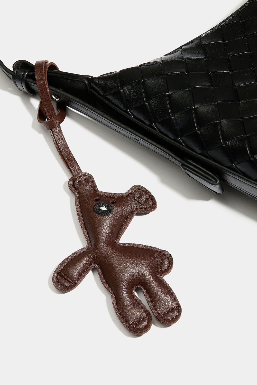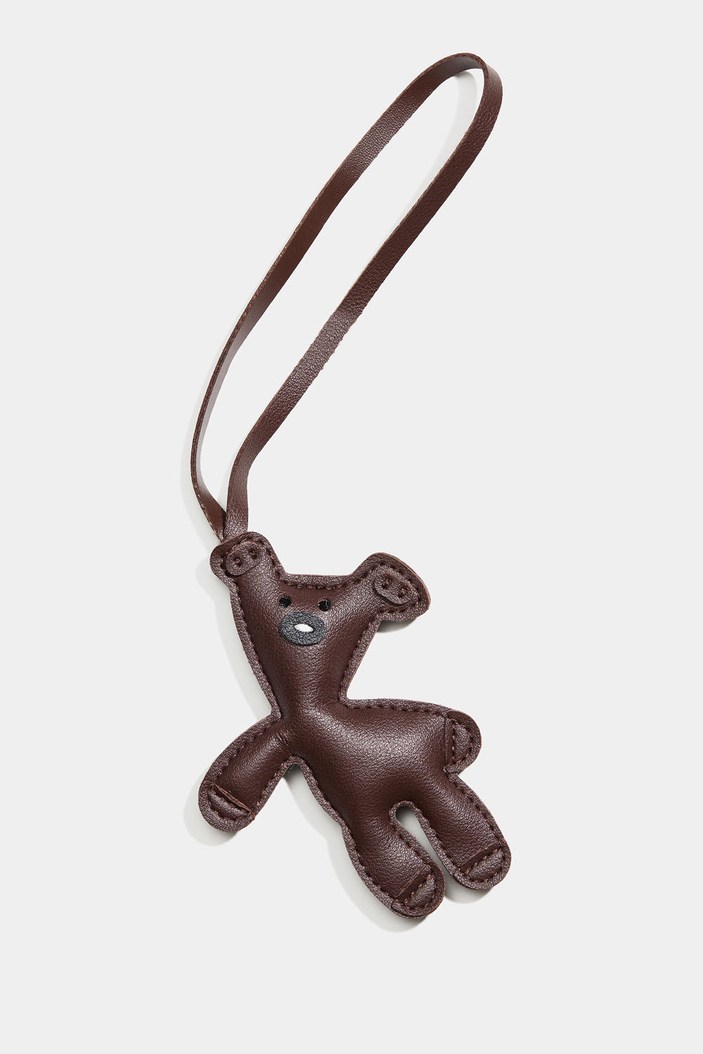Veskedekorasjon med teddybjørn i brunt imitert skinn.
