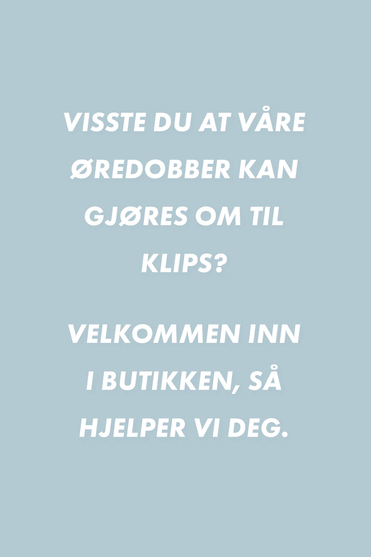 Nedenfor finner du våre øreklips som er perfekte for deg som ikke har hull i ørene, eller hvis du vil bære en ekstra øredobb uten å måtte ta flere hull i øret. Vi har et stort utvalg av øreklips som passer både til hverdags og til festlige anledninger. Her finner du også klipsfester som du kan bruke for å gjøre om vanlige øredobber til klips.