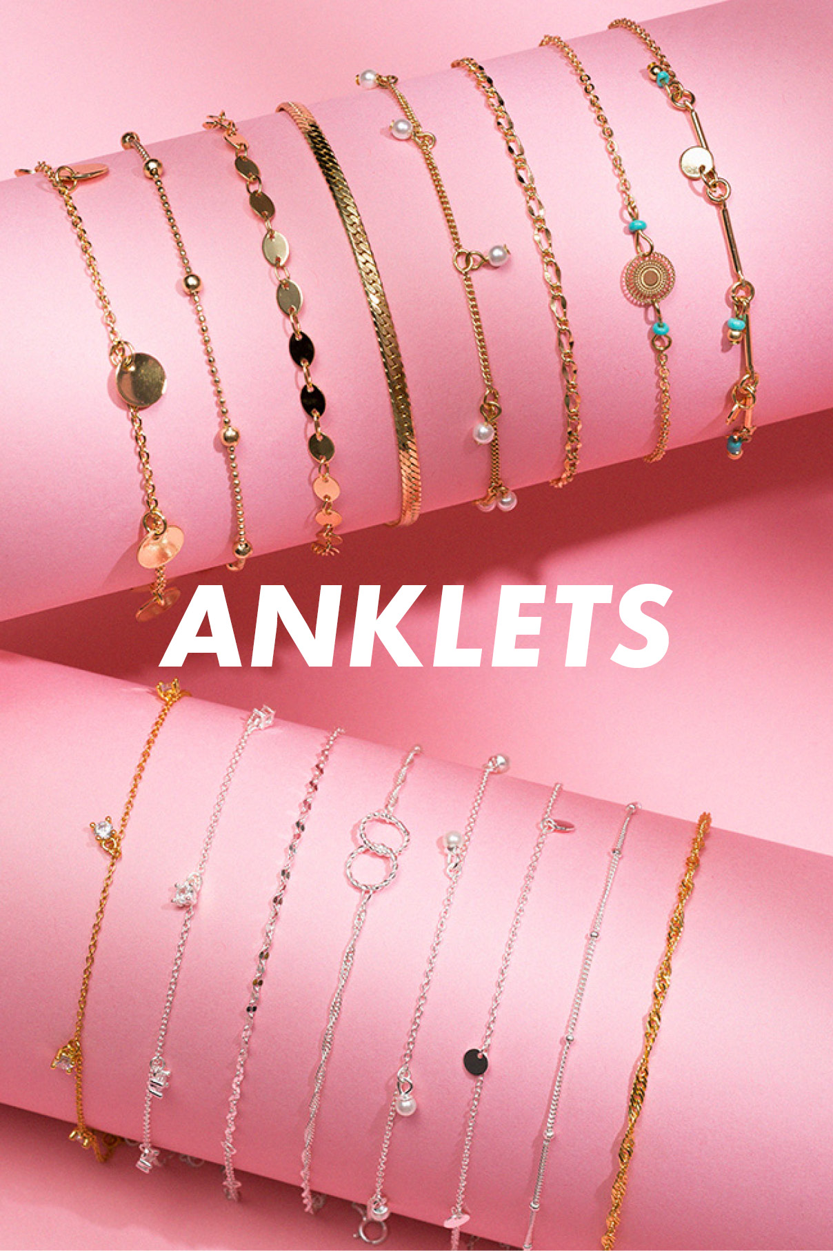 Ankellenke, ankelsmykke eller fotsmykke – kjært barn har mange navn! Fotens motstykke til armbåndet er et veldig populært smykke og passer perfekt til den kortere buksen, kjolen eller skjørtet. Her finner du vårt tilbud av det trendy vår- og sommertilbehøret, som kan fås i farget metall, ekte sølv og 18K forgylt sølv.